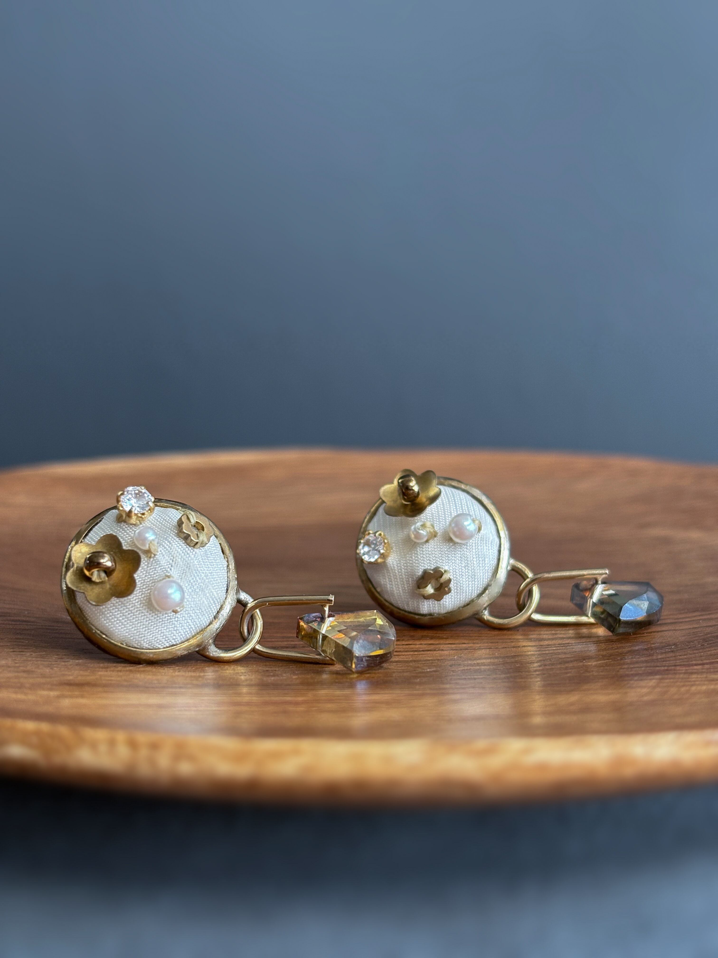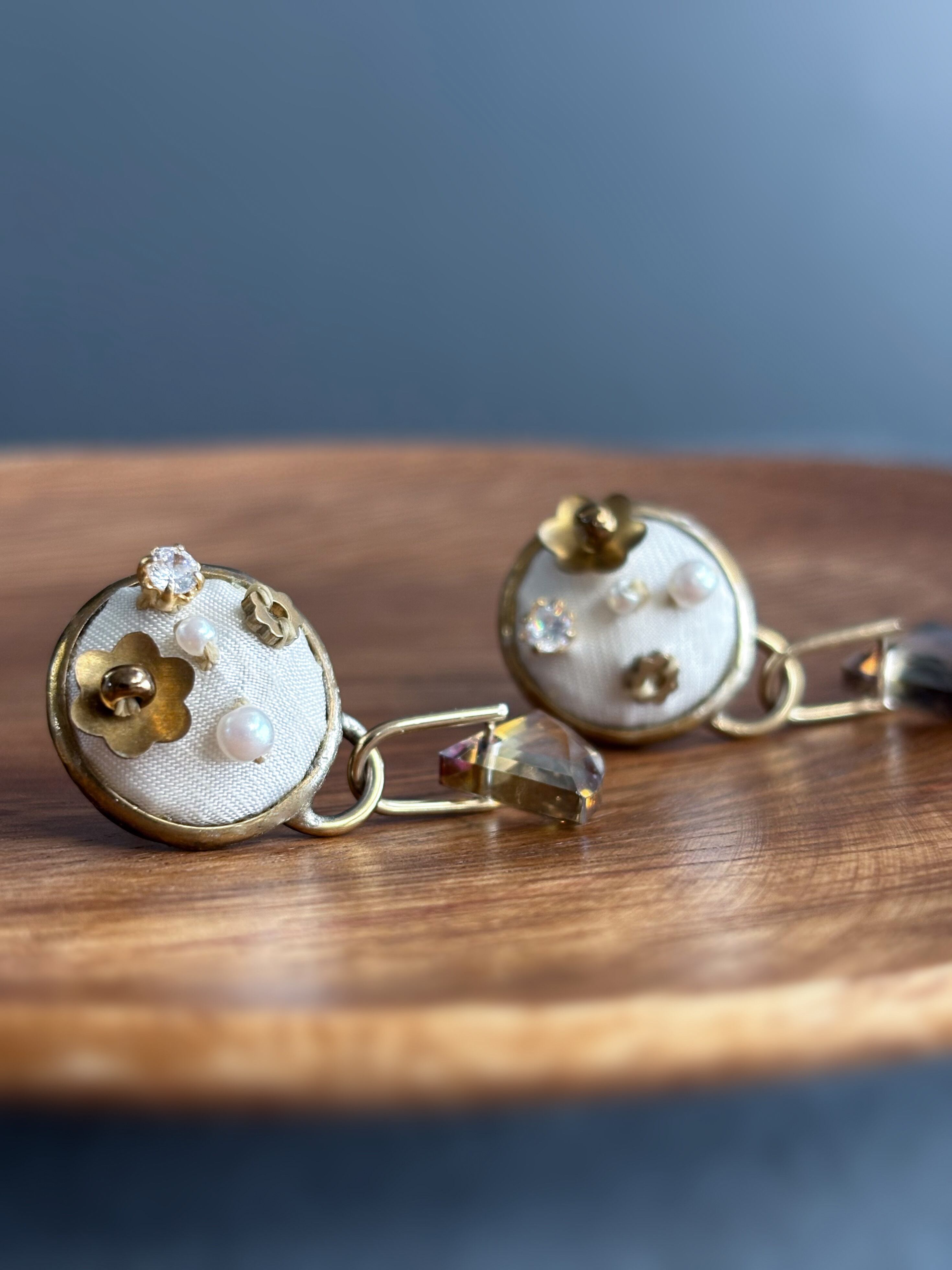 ヴィンテージフラワー×煌めくガラスビーズピアス/イヤリング