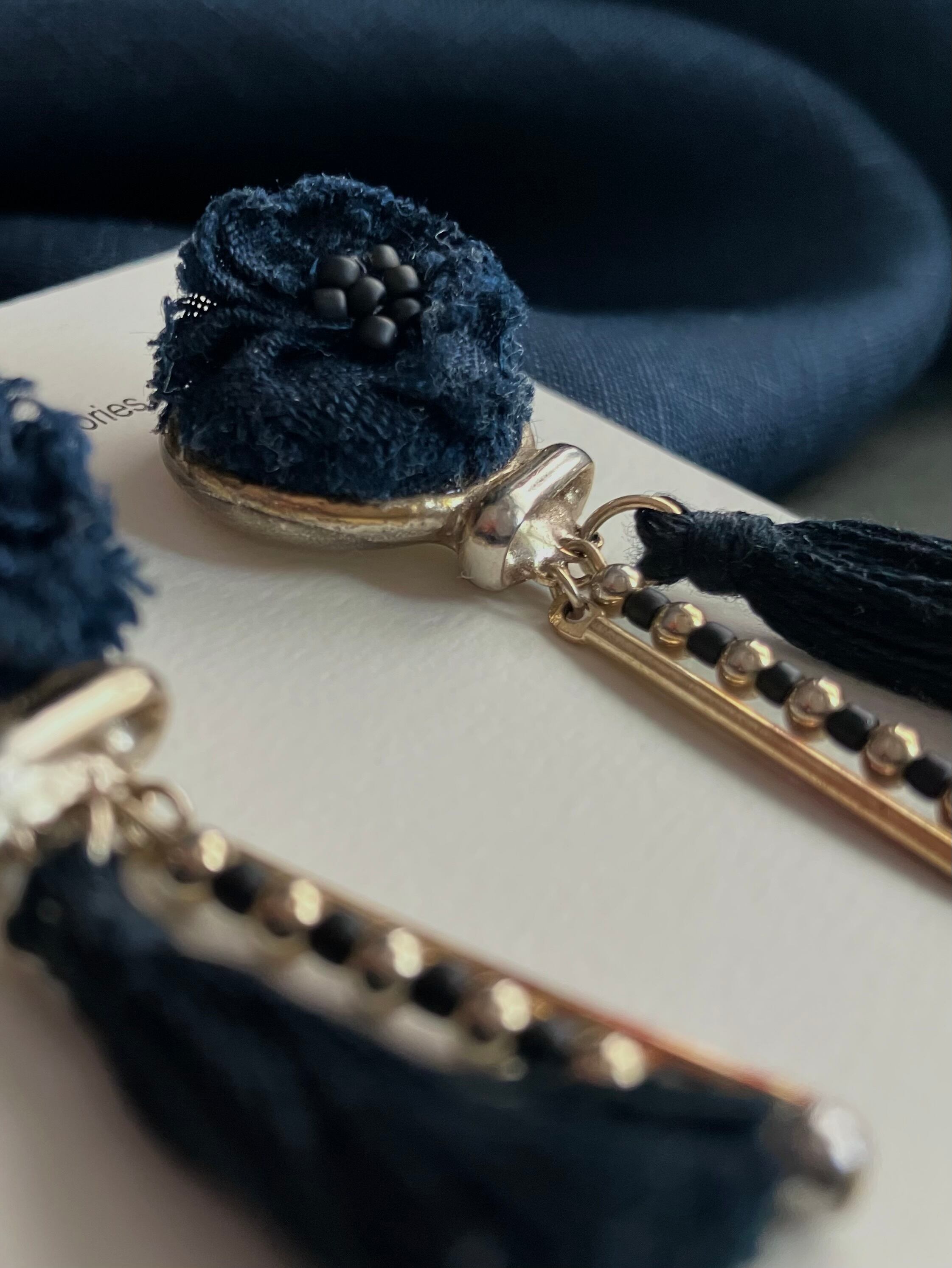 リネン生地でフリンジの花モチーフを立体的に咲かせました