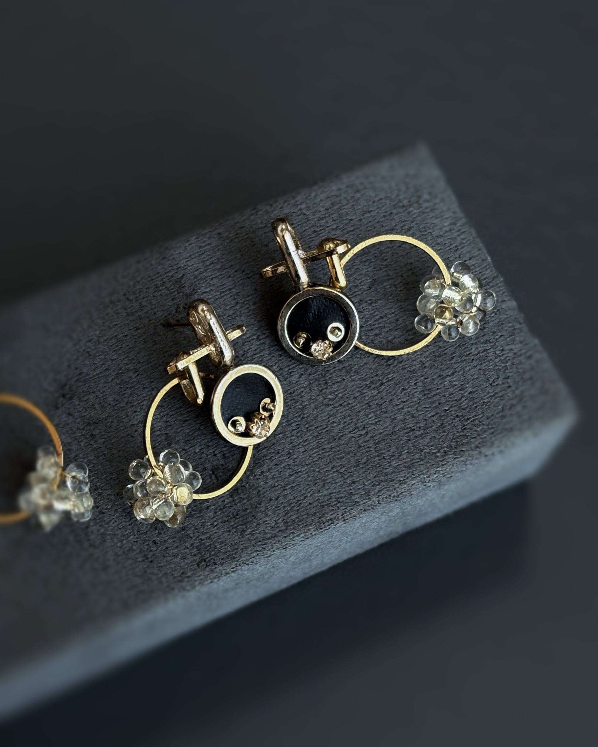光と風をまとう、クリアビーズピアス/イヤリング【ブラック】