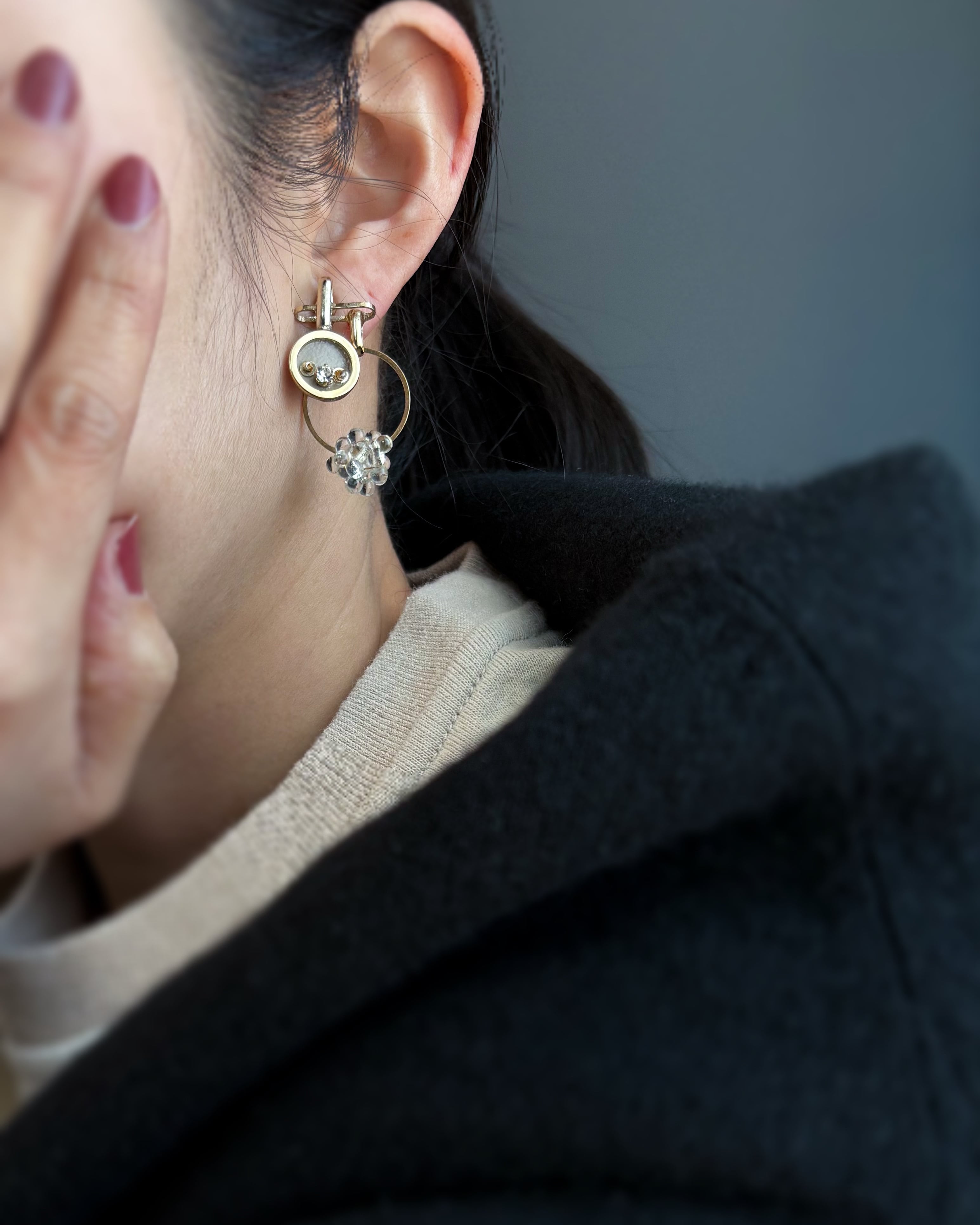 金属アレルギー対応のピアス・イヤリング金具を使用しています。その他にも肌に当たる箇所にはアレルギー防止のコーティングを施しておりますが、アレルギー反応が起こらないことを保証するものではありません。